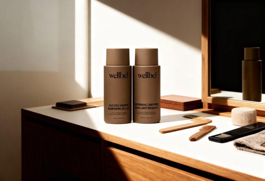 The Wellbel Detox + Restore Duo includes the Gelée Detox Shampoo and Restorative Conditioner. It is physician formulated and color safe. It removes buildup without stripping hair. It hydrates and supports long-term hair wellness.