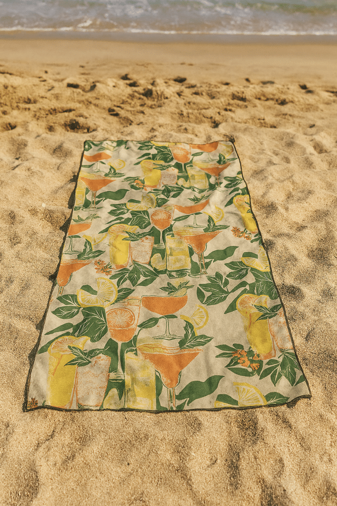 They sent me the Summer Refreshments beach towel and the Monochrome Waves beach blanket. I’ve been using both consistently for a few weeks now—at the beach, after runs, at the pool, and even just hanging out in the backyard. Here’s my honest review after putting them to real use.